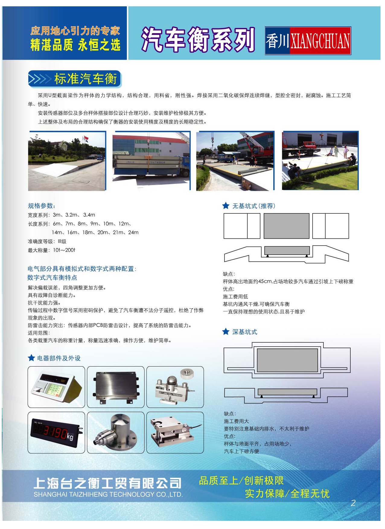 一、产品概述 SCS型、XC-A系列模拟式汽车衡,适用于港口、码头、机场、矿山、冶金、物资、仓库以及工厂企业的大宗载重货物车辆的称重计量。它首创分离式数字技术,通过对模拟传感器输出的信号进行A/D转换,使接线盒到仪表的信号为数字信号,进而降低了遥控作弊的机会、受温度、射频干扰的机会,同时也使传输距离比普通模拟式更远,信号传输更加稳定,使用也更加稳定,维护也变得很方便,利用此项技术可以实现对老模拟式汽车衡的升级改造,但因其传感器依然是模拟传感器,系统精度方面不会提高,故其归类仍属于模拟式电子汽车衡,它具有如下特点: 传输距离可以达到100米以上,受射频等干扰机会小,信号传输稳定 超高强度U形钢结构秤台,抛丸防腐处理、坚固耐用 维护简便费用低 零点跟踪、自诊断、时钟、数据断电保护 超载、欠载等状态提示 数字显示毛重、净重、皮重 数据管理方便 系统可接打印机,大屏幕,以适应不同的使用要求 可配接软件,与电脑联机组成电脑管理系统 安装形式有无基坑和浅基坑两种方式